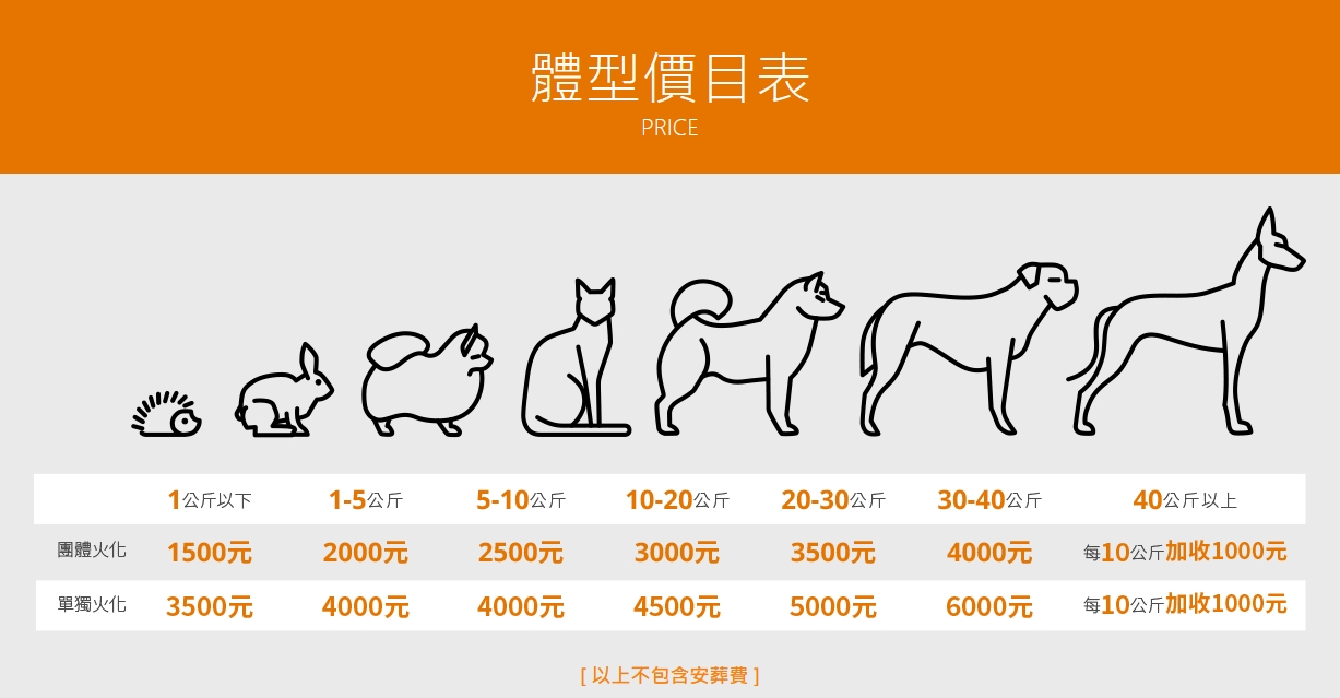 四方的火化有單獨火化、團體火化,火化費用也是依狗狗體重而定(不含安葬費)